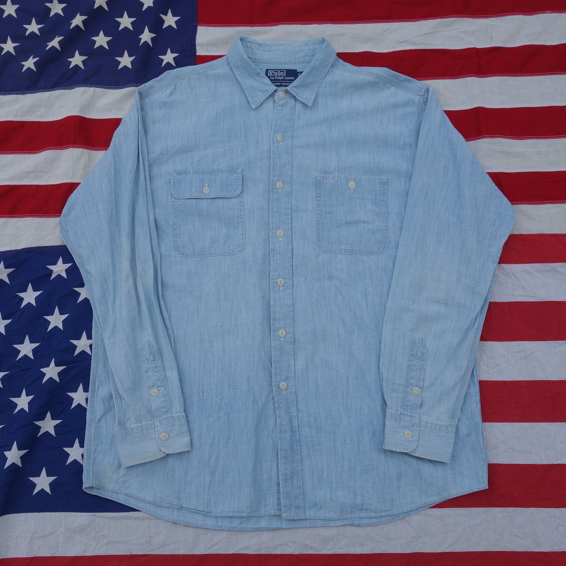 90's POLO RALPH LAUREN(ポロ ラルフ ローレン) DUNGAREE WORKSHIRT ダンガリーシャツ ガチャポケ