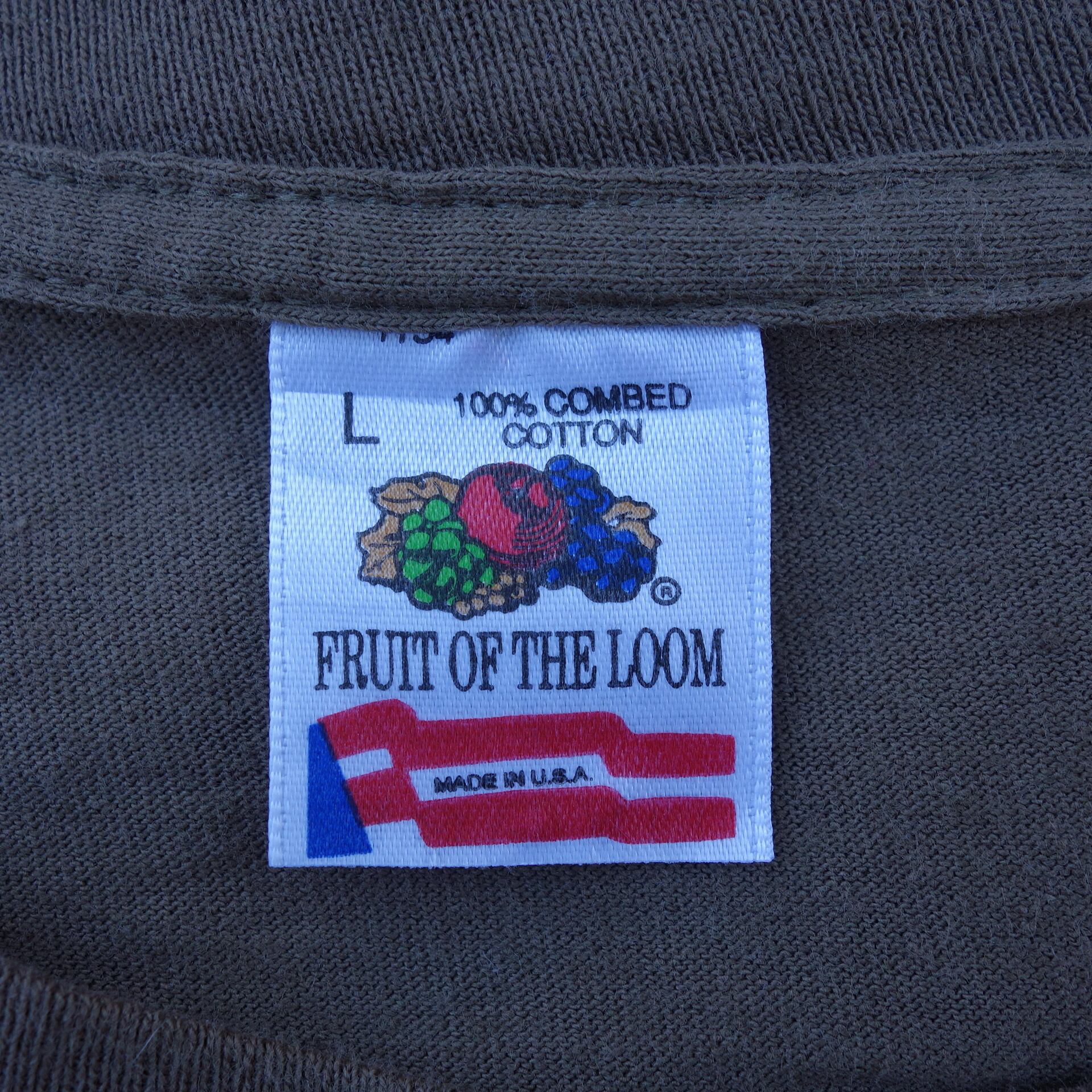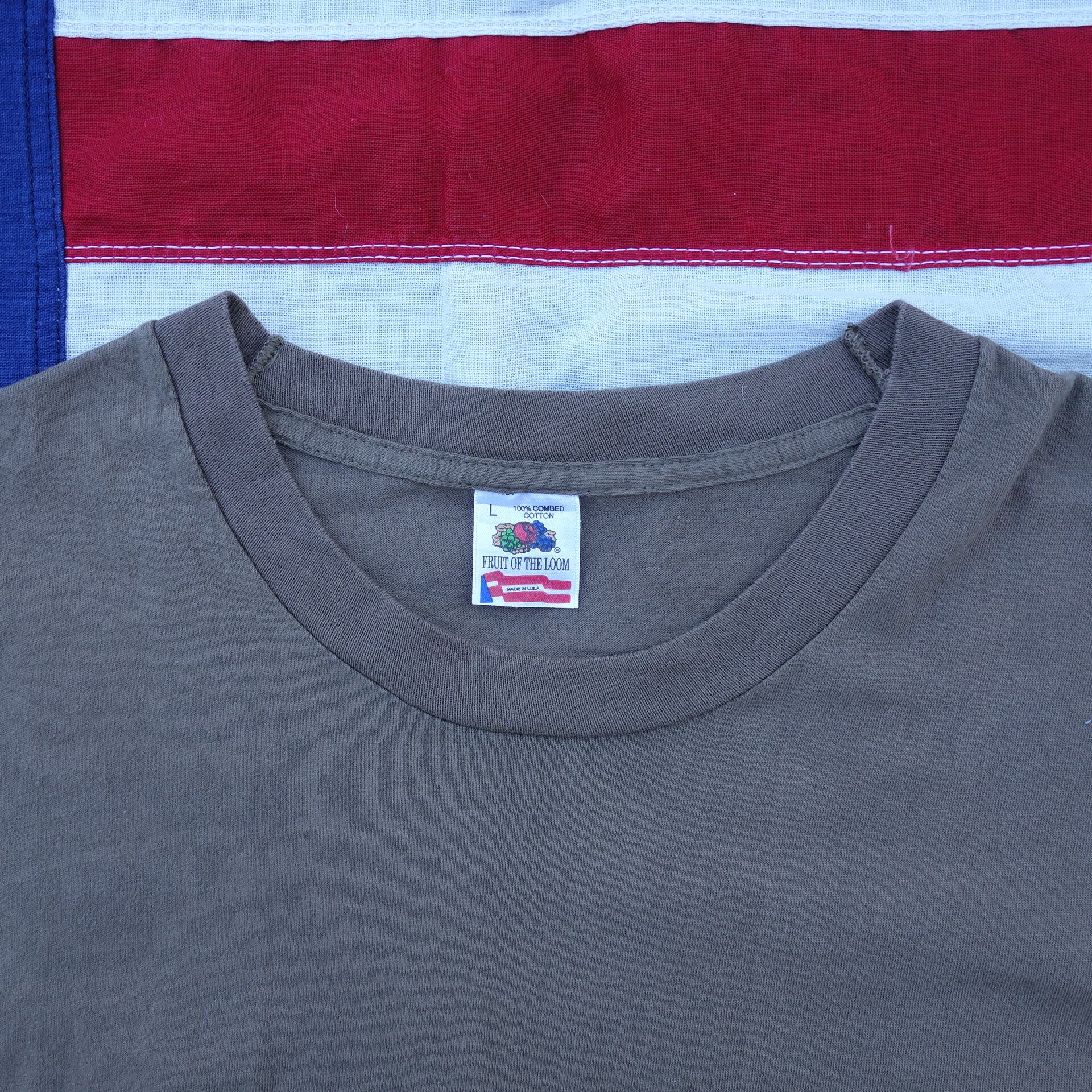 ●90年代アメリカ製FRUIT OF THE LOOMのブラウン色、Uネック半袖Tシャツです。