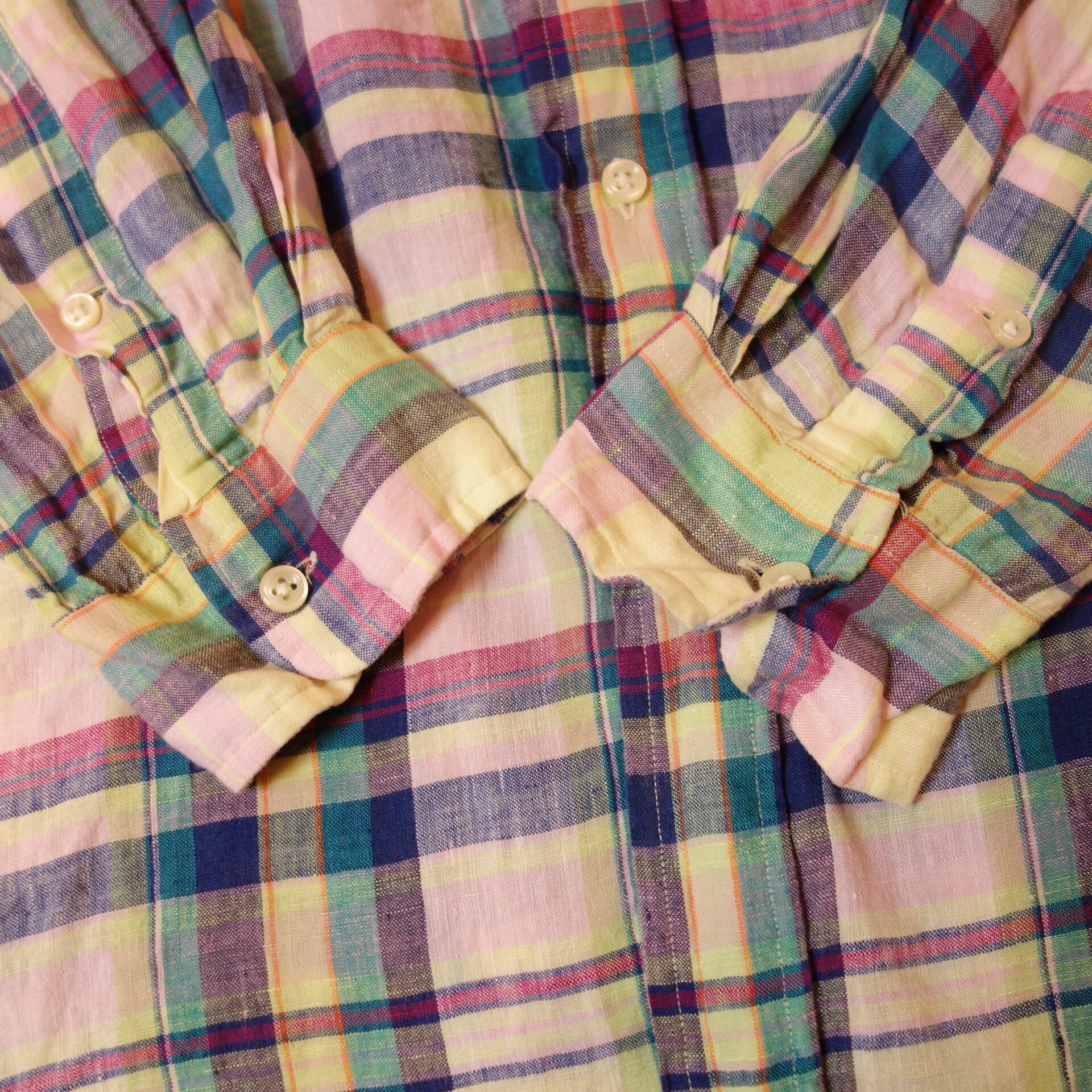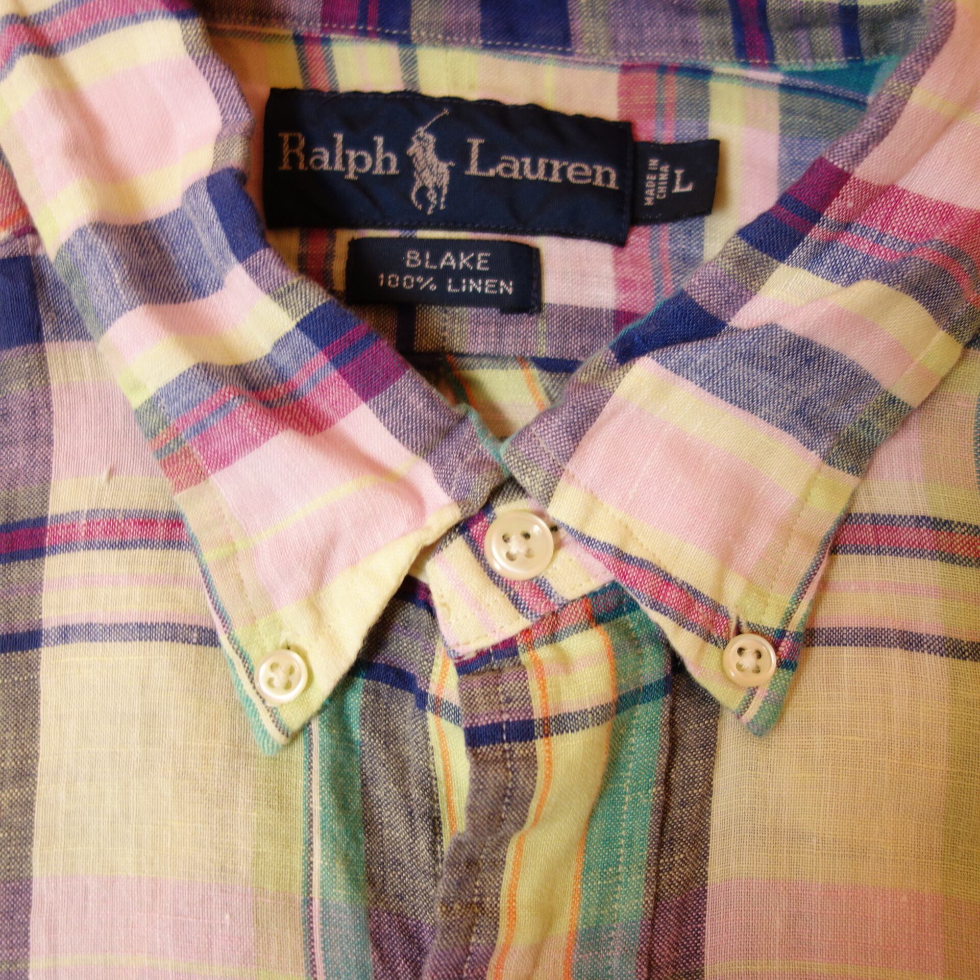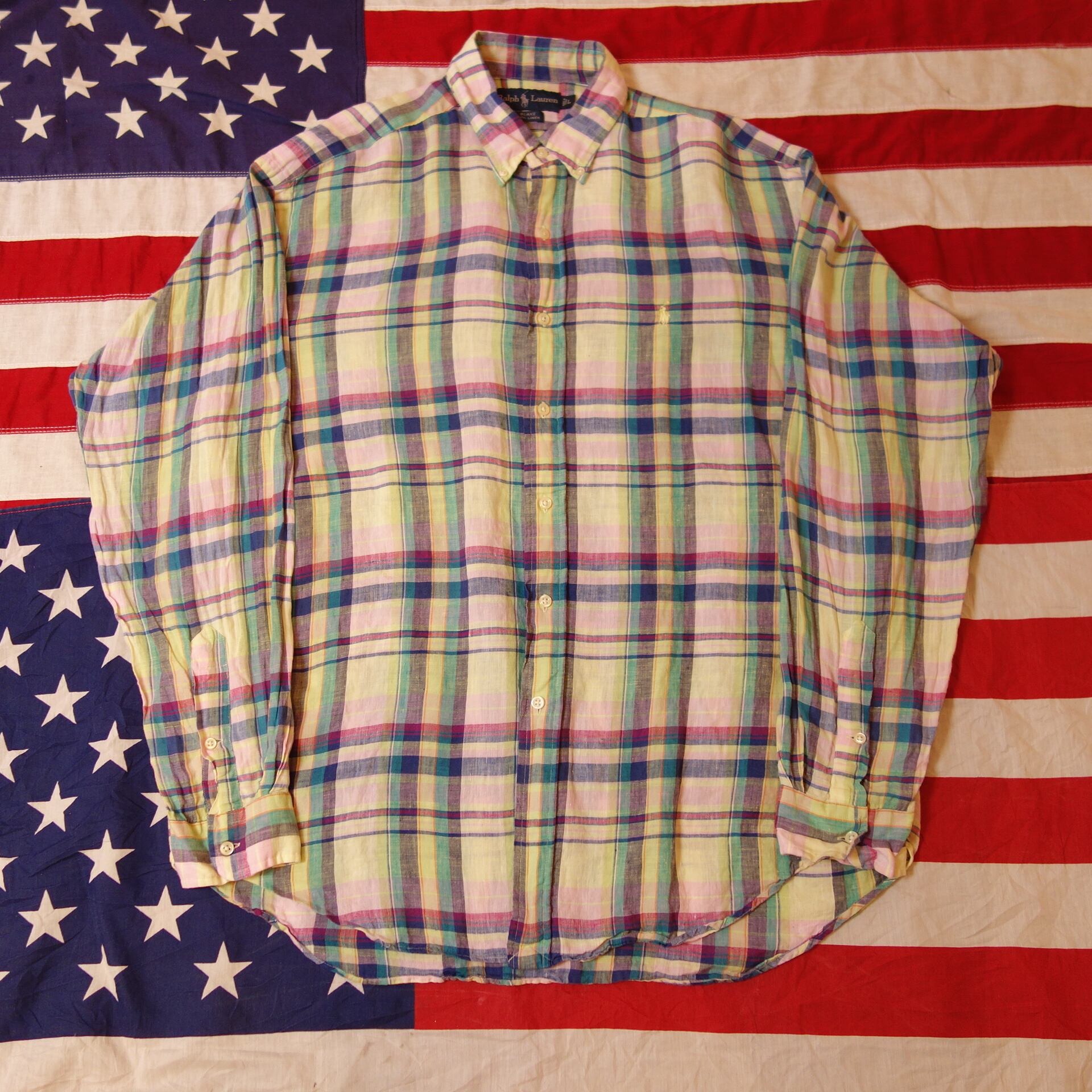 90s POLO RALPH LAUREN (ポロ ラルフ ローレン) リネン チェックシャツ 刺繍 ポニー BLAKE