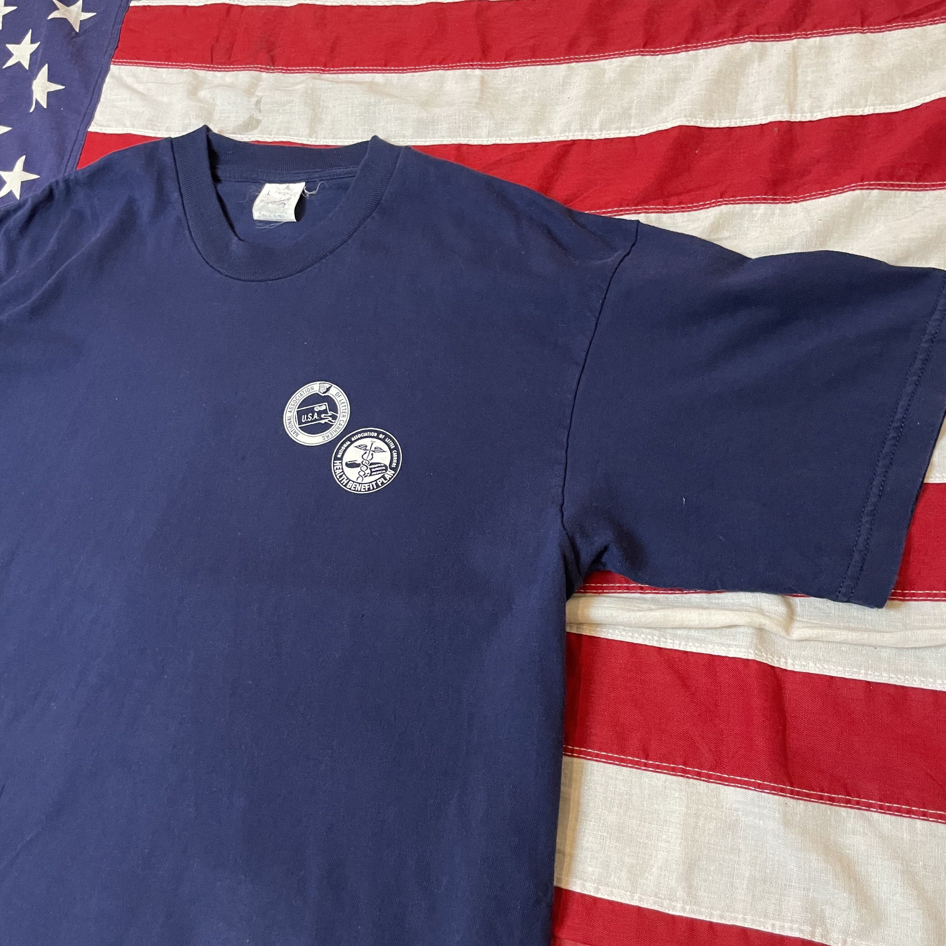 90's【USA製】UNKNOWN 企業ロゴ 生命保険 プリントデザイン Tシャツ 半袖