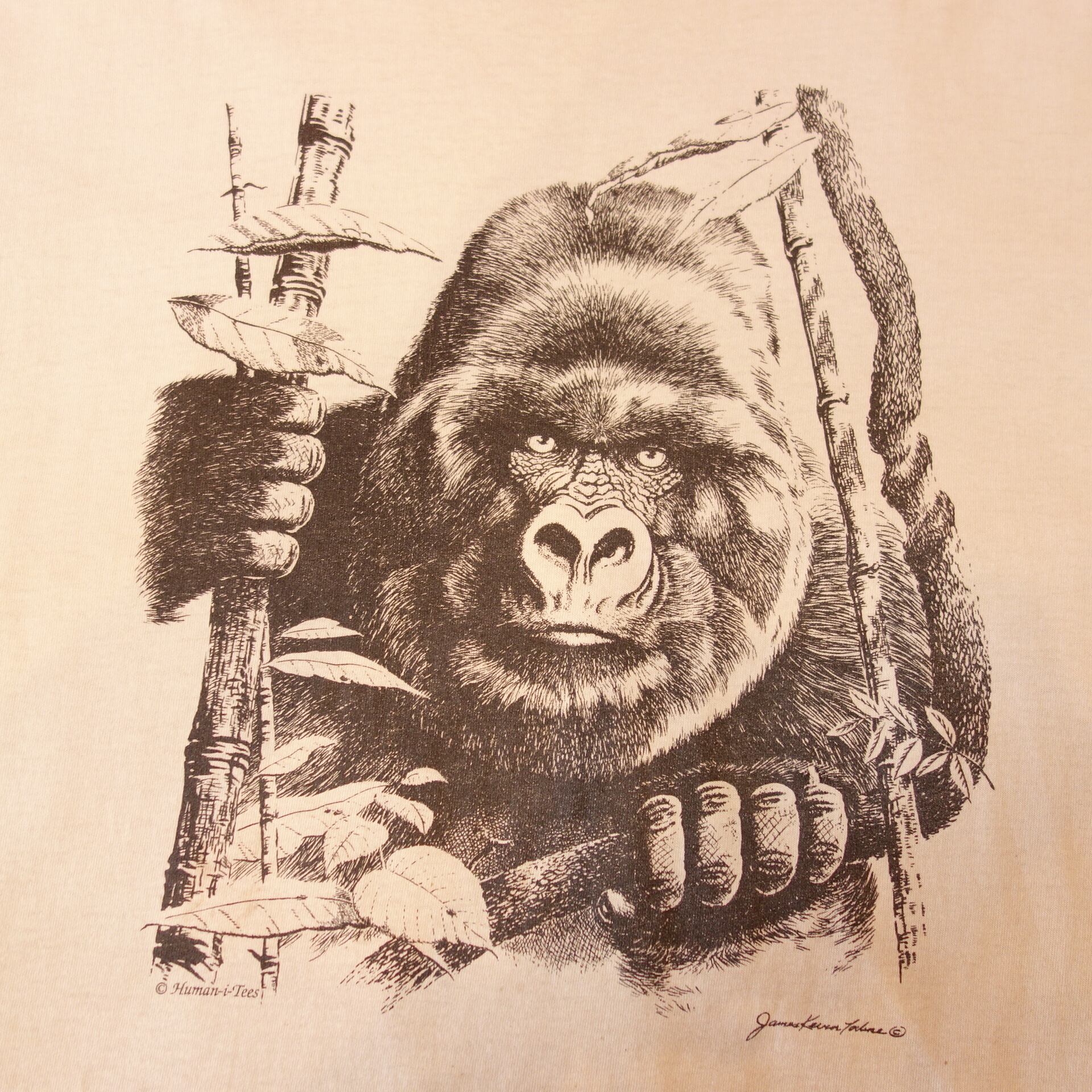 90's【USA製】Human-i-Tees リアルゴリラ 迫力 雰囲気 ヴィンテージ デザインプリント Tシャツ 半袖