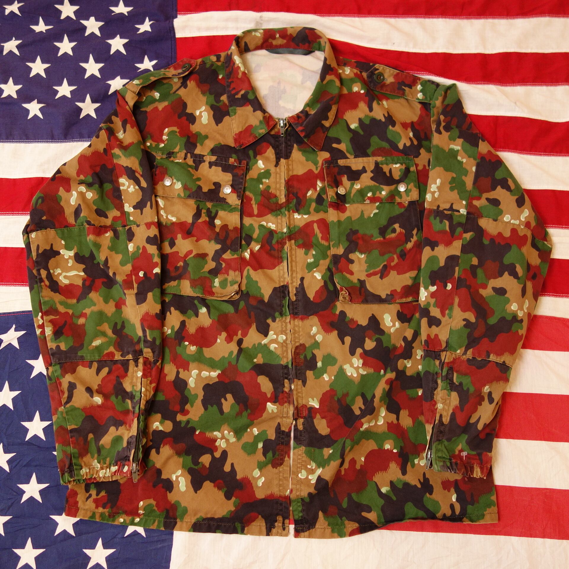 80's~【スイス軍】アルペンカモ 山岳 パラシュート フィールドジャケット コンバット ミリタリー M83