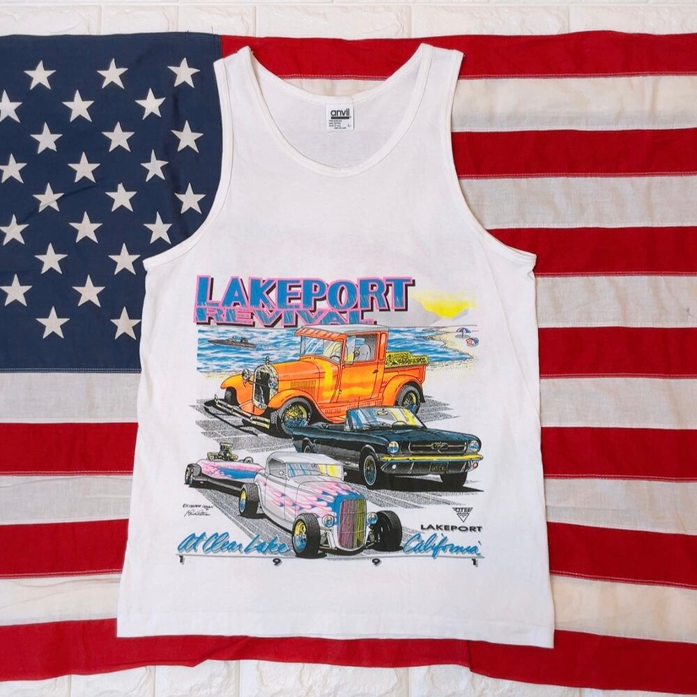 90's【USA製】anvil(アンビル) モータースポーツ レーシング 企業ロゴ 両面フルプリント タンクトップ Tシャツ