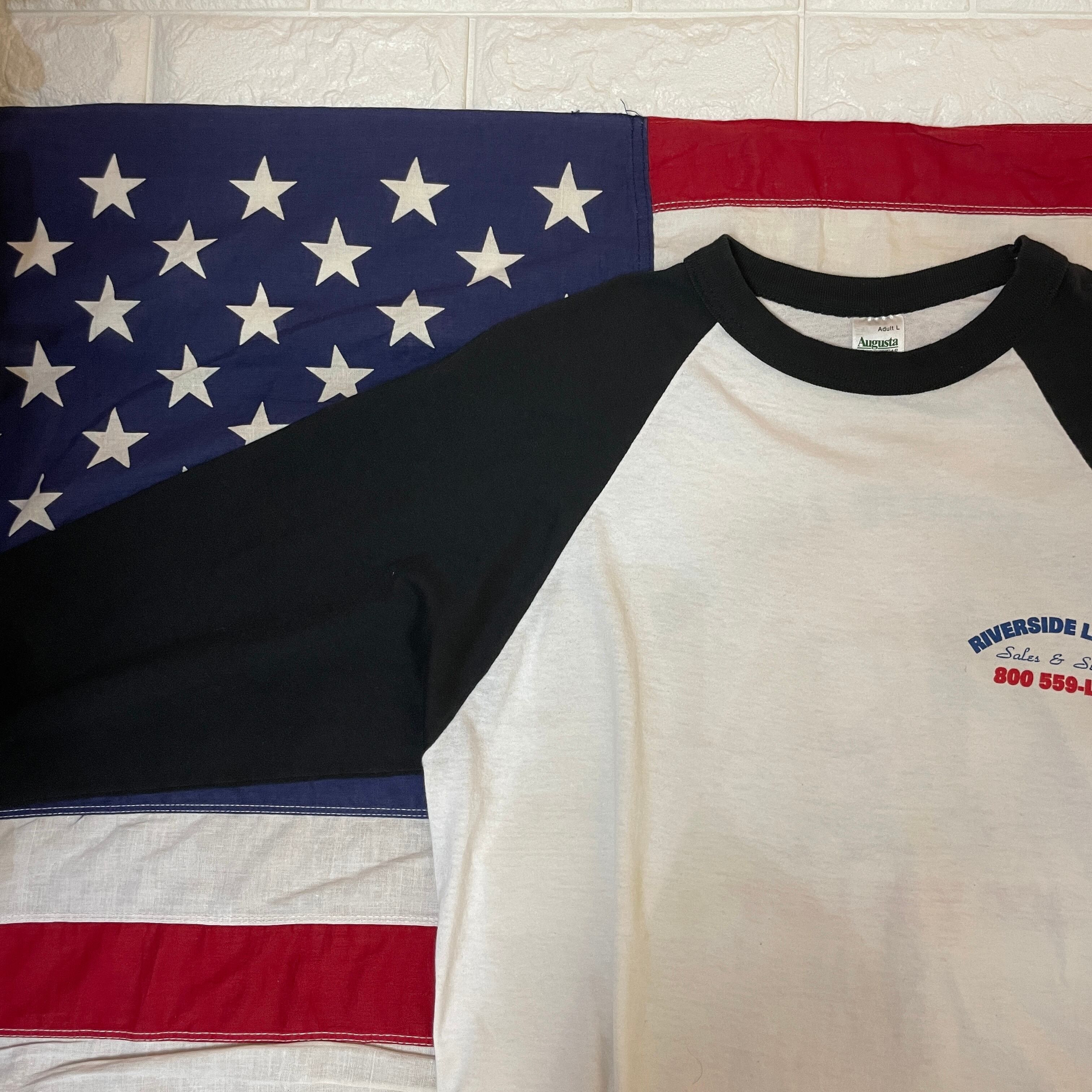 90's 【USA製】Augusta(オーガスタスポーツ) バック企業ロゴ プリントデザイン ラグランTシャツ 七分袖