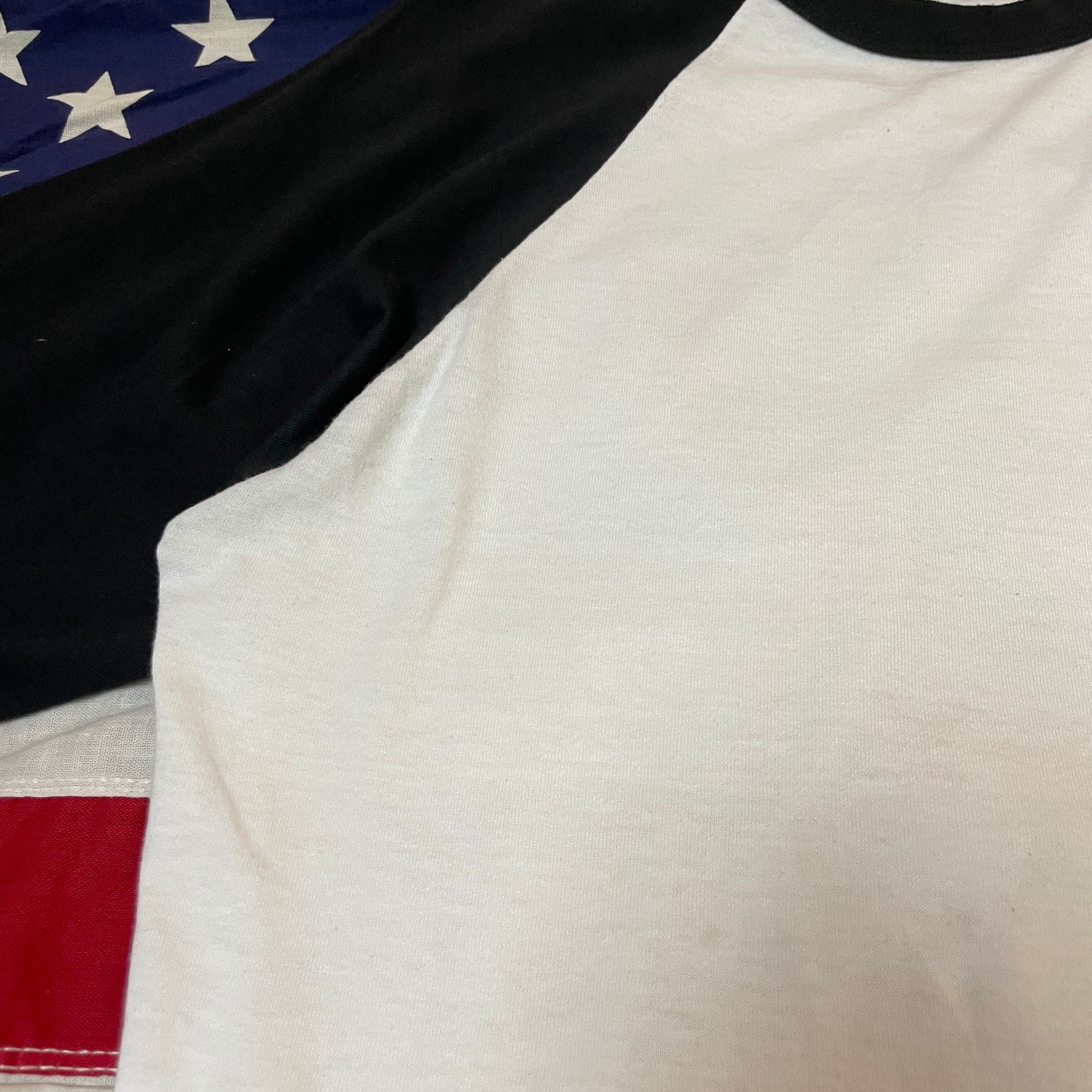 ●1990年代ごろの七分袖ラグランtシャツ。雰囲気ある企業デザインプリント。