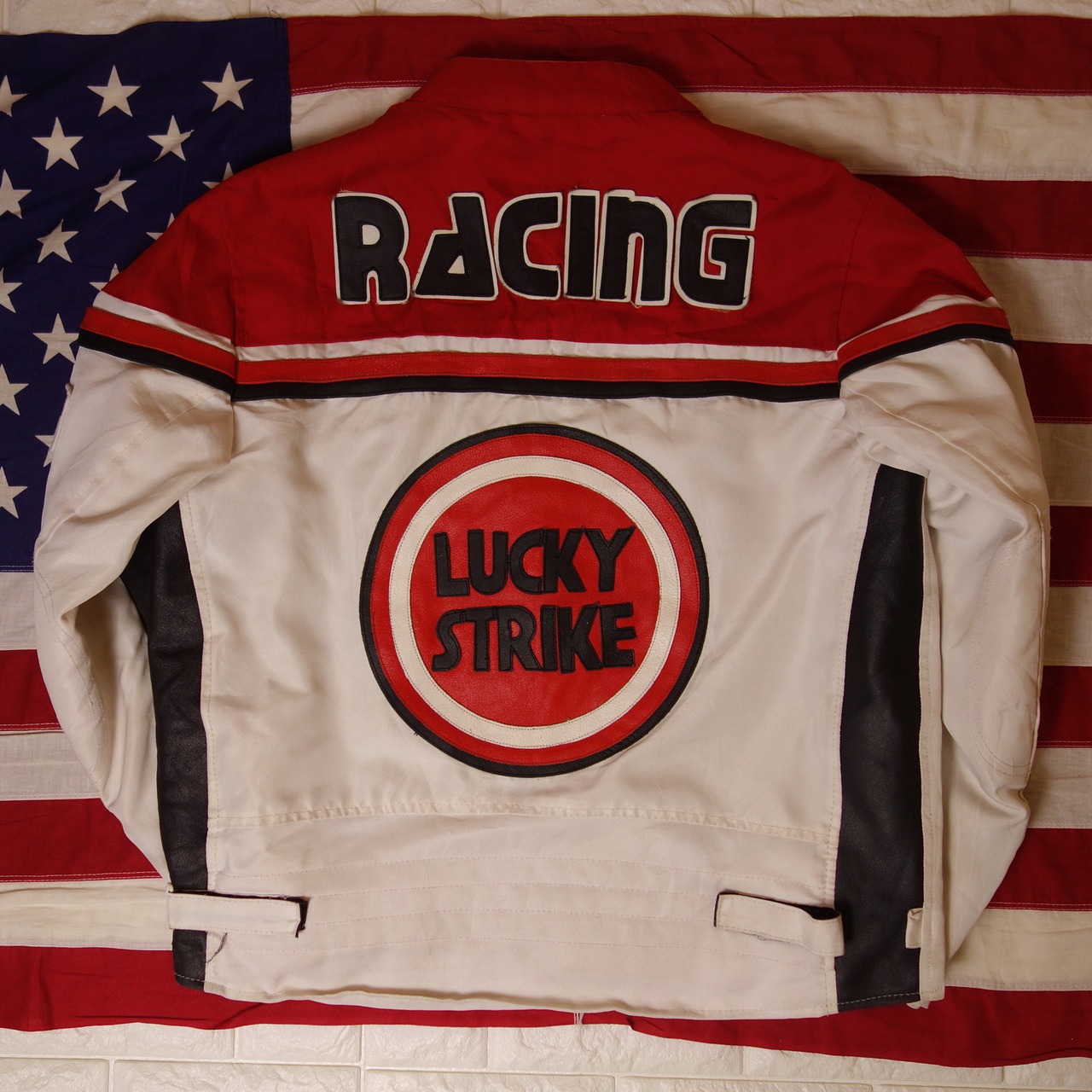 ●レーシングチームの中でも人気の「LUCKY STRIKE(ラッキーストライク)」のスポンサーロゴがバッチリとレザーで入ったレーシングジャケット