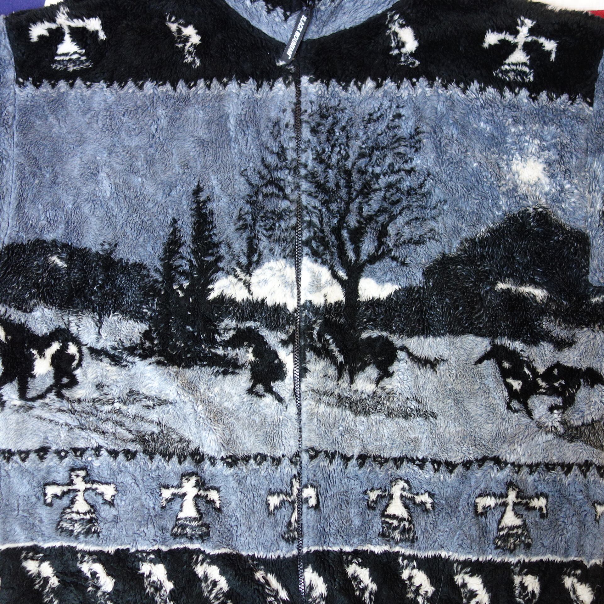 90's 【USA製】BLACK MOUNTAIN Horse ANIMAL FullPrint Fleece Jacket アニマル フルプリント フリースジャケット ボア