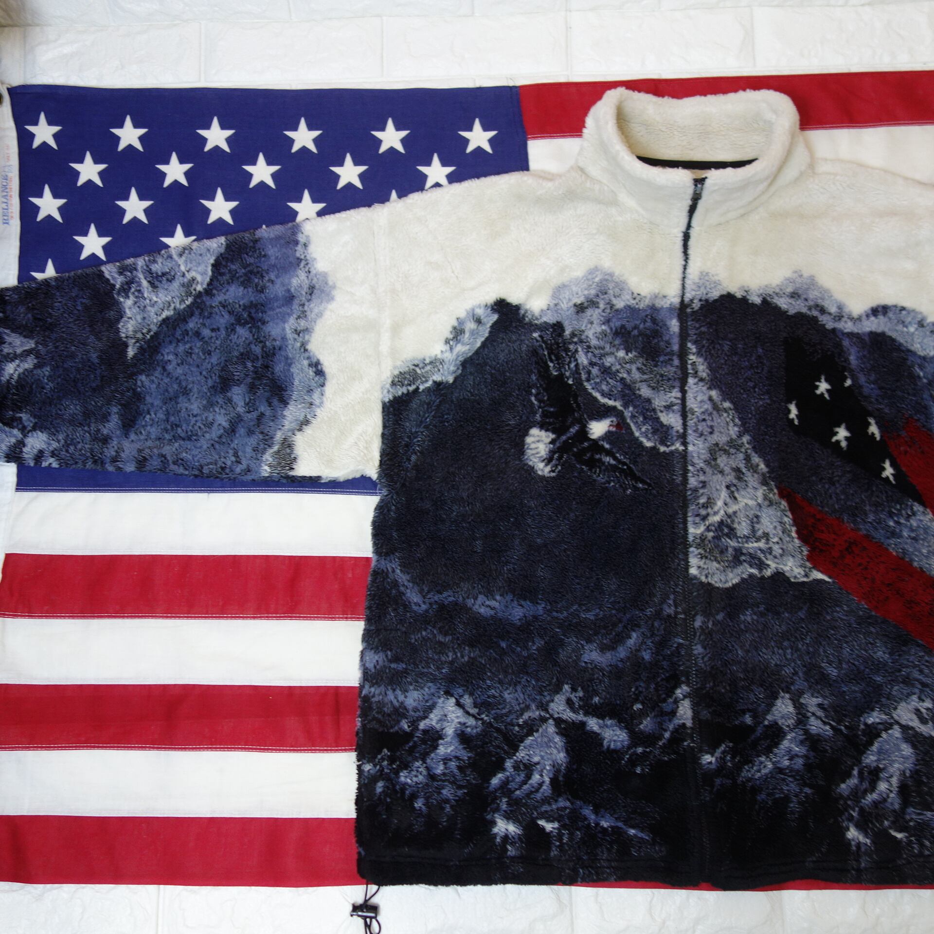 90's 【USA製】 Hawk ANIMAL FullPrint Fleece Jacket アニマル フルプリント フリースジャケット ボア