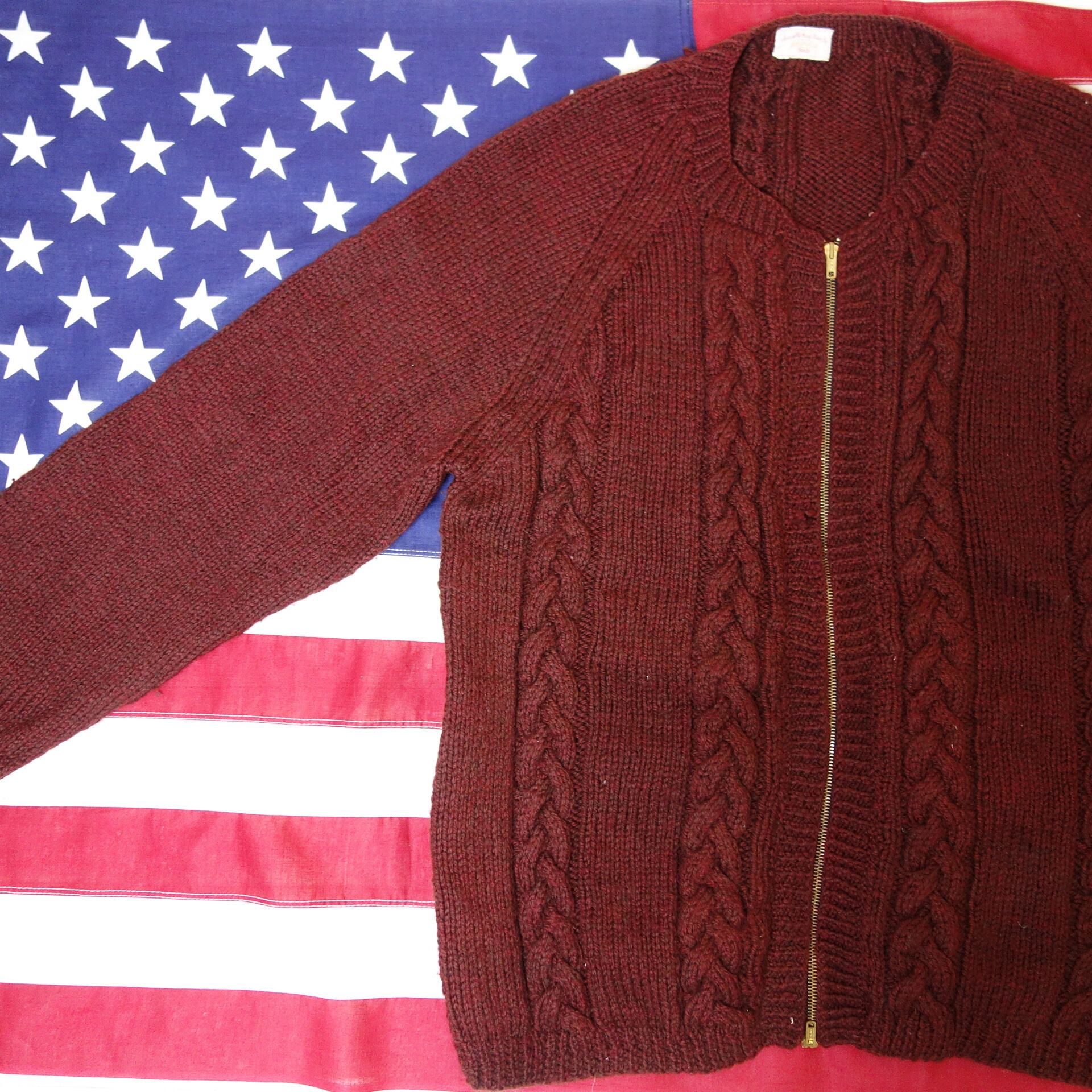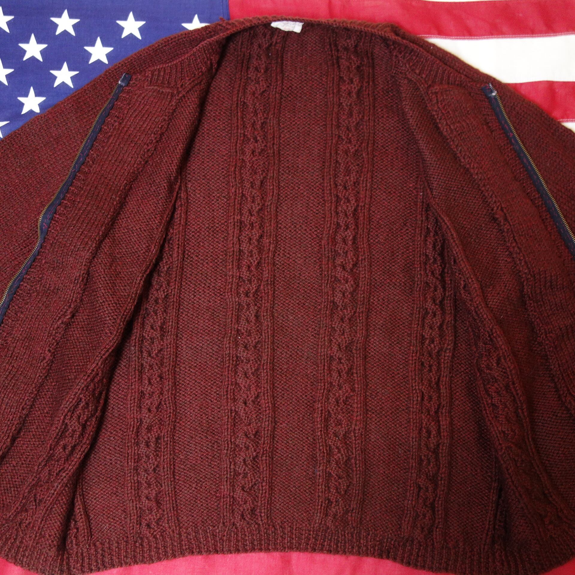 60's Vintage Specially Hand Made Wool Cabale Knit Full Zip USA TALON ケーブル編みニット