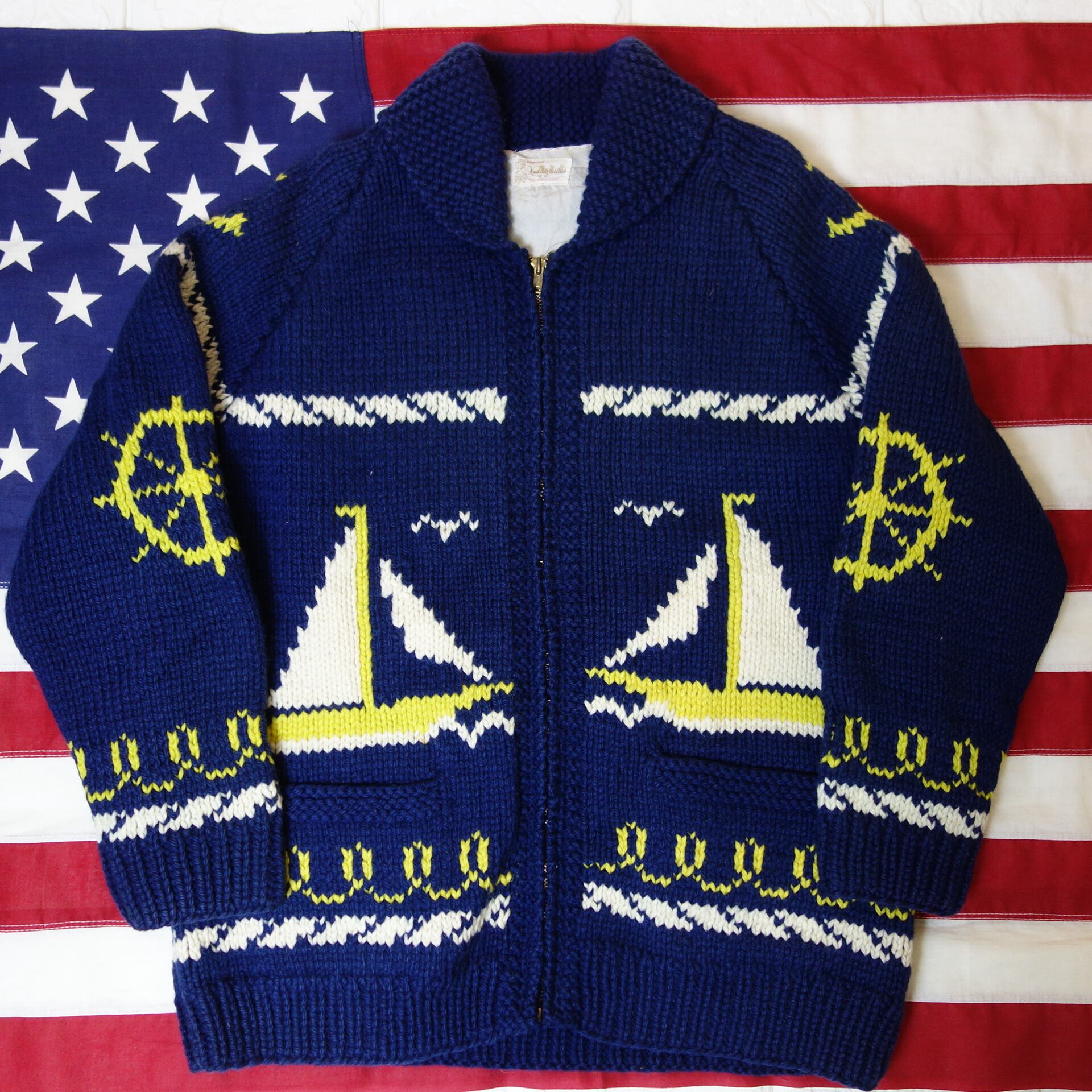 60's Vintage Design Cowichan Knit Barbara Lacroix TALON Zip Ocean カウチンニット ジャケット フルジップ