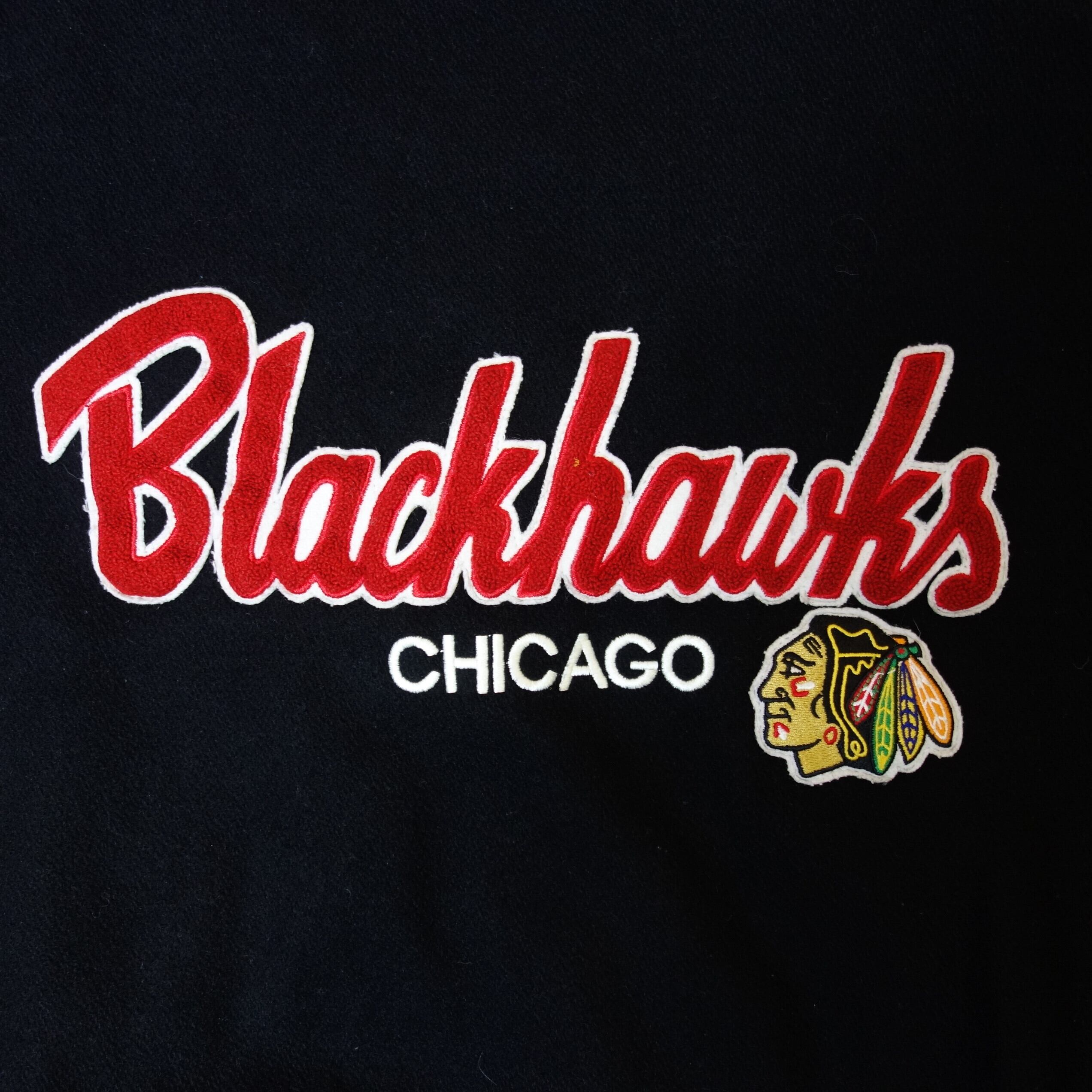 ●NHL シカゴ・ブラックホークスの旧ロゴのネイティブ・アメリカンな刺繍のノリが素敵な一品。現在では使用できないチームデザインのためレアです。