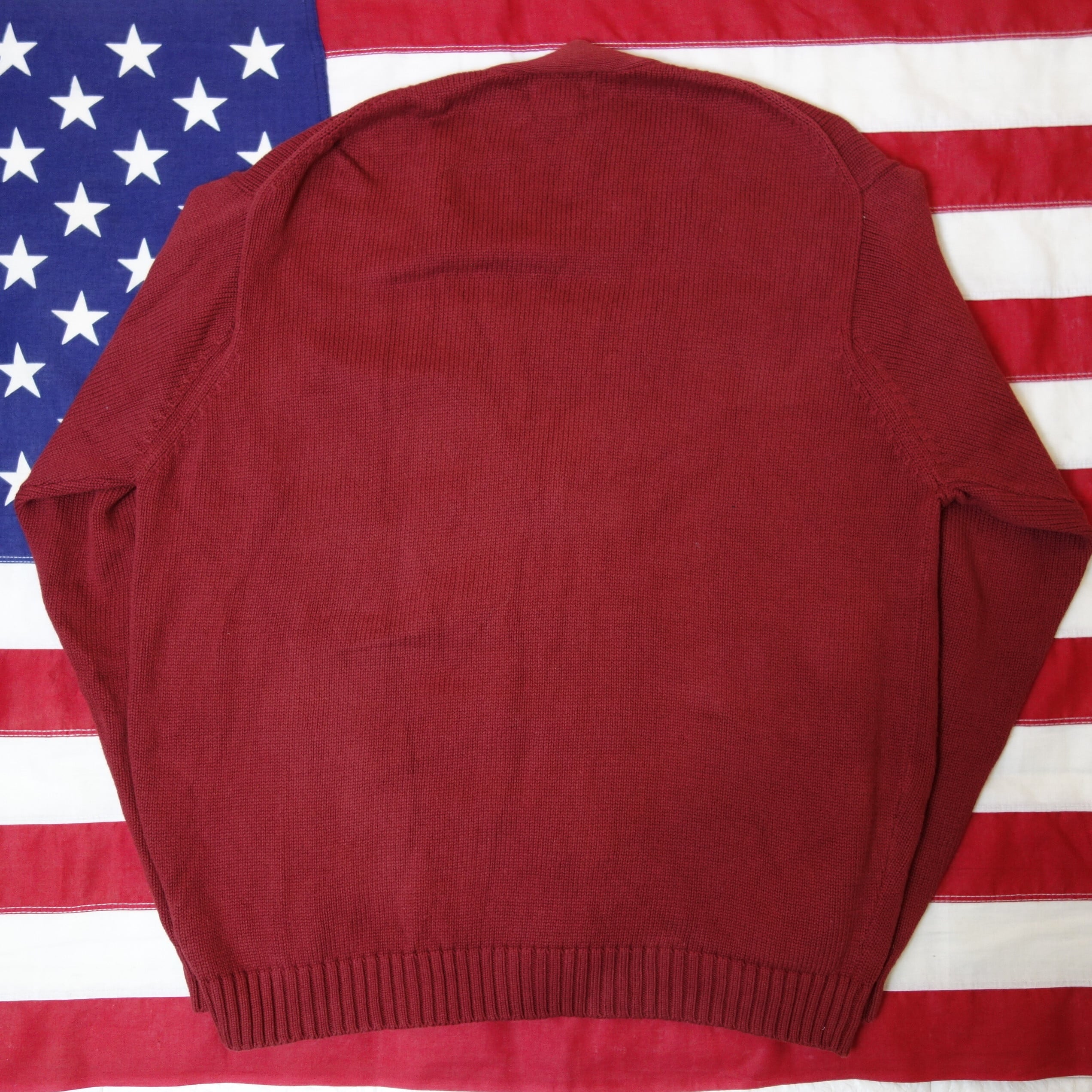 90's 【香港製】 L.L.Bean(エルエルビーン) Cotton Knit Cardigan コットンニット カーディガン Burgundy color ボルドー