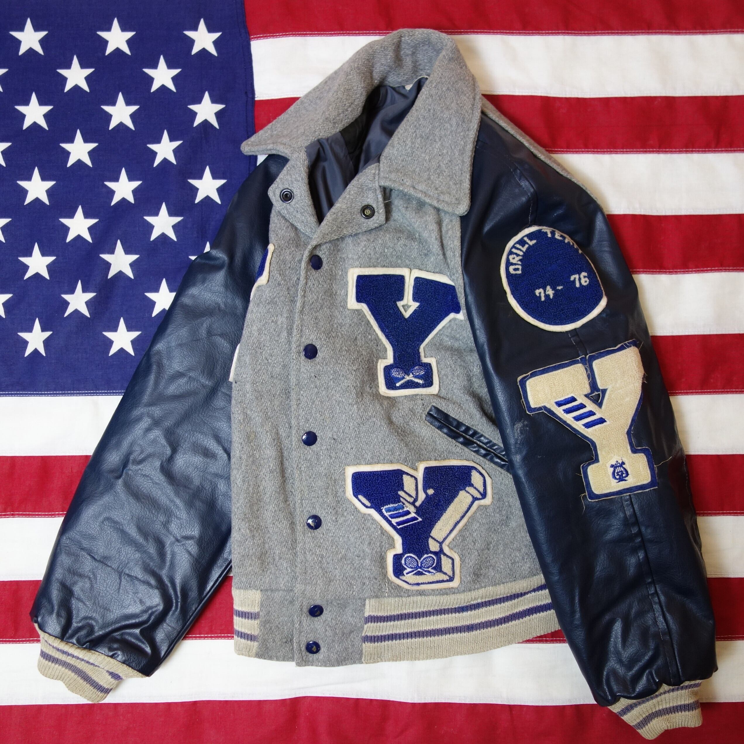 90's~ Vintage Wool Leather Stadium Jacket ウールレザー スタジャン ワッペン デザイン