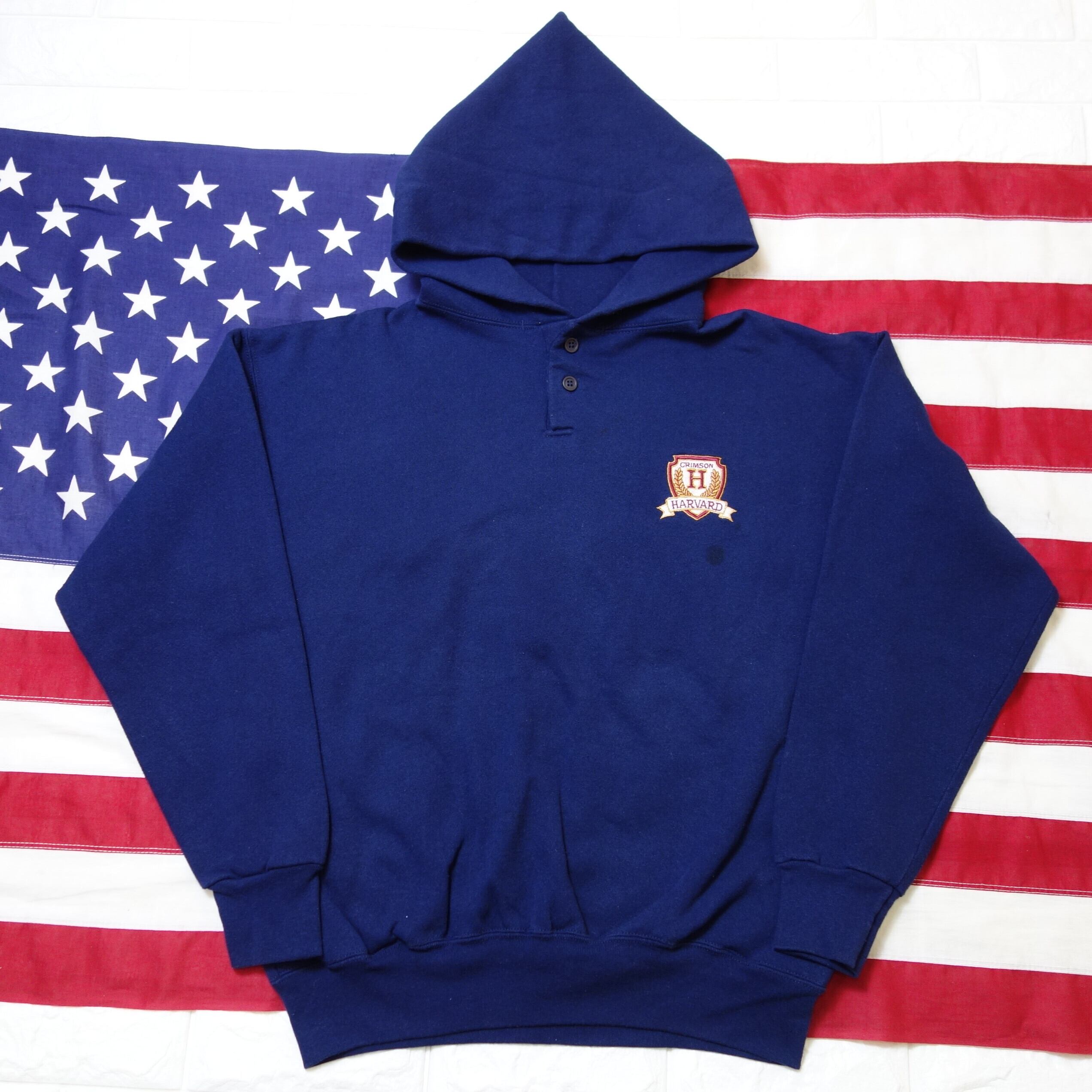 90's 【USA製】 MEDALLION Harvard Crimson Henley Neck Hoodie ハーバード・クリムゾン ヘンリーネック パーカー フーディー