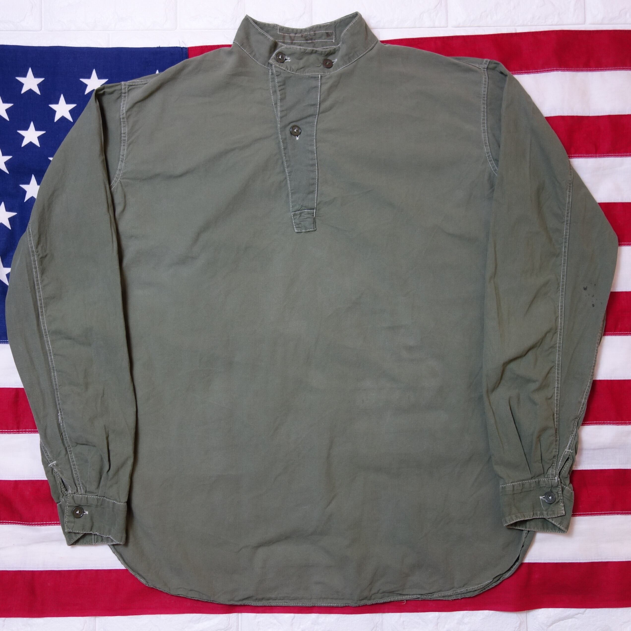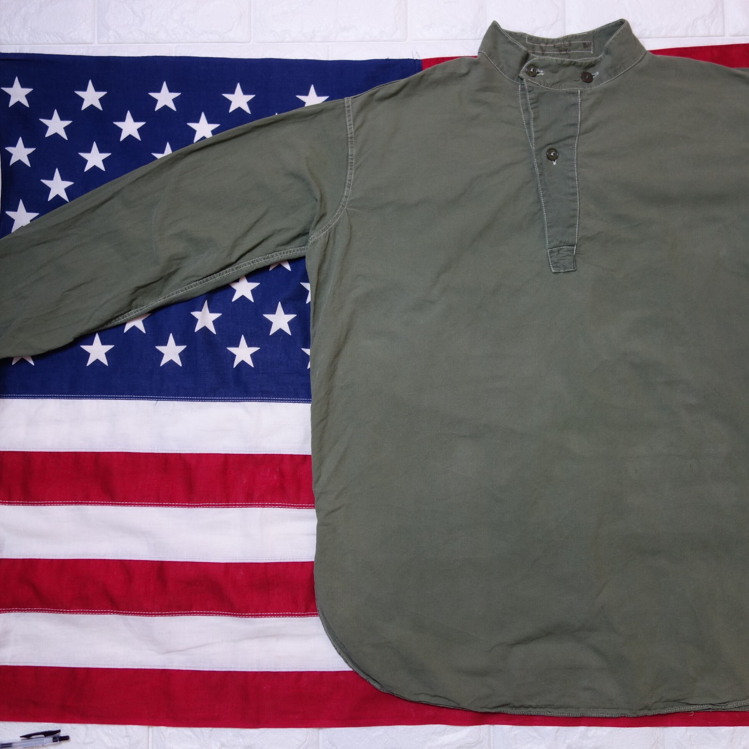 50's Swedish Army 1st Model Sleeping Shirt スウェーデン軍 初期型 スリーピング シャツ グランパ スタンドカラー ノーカラー