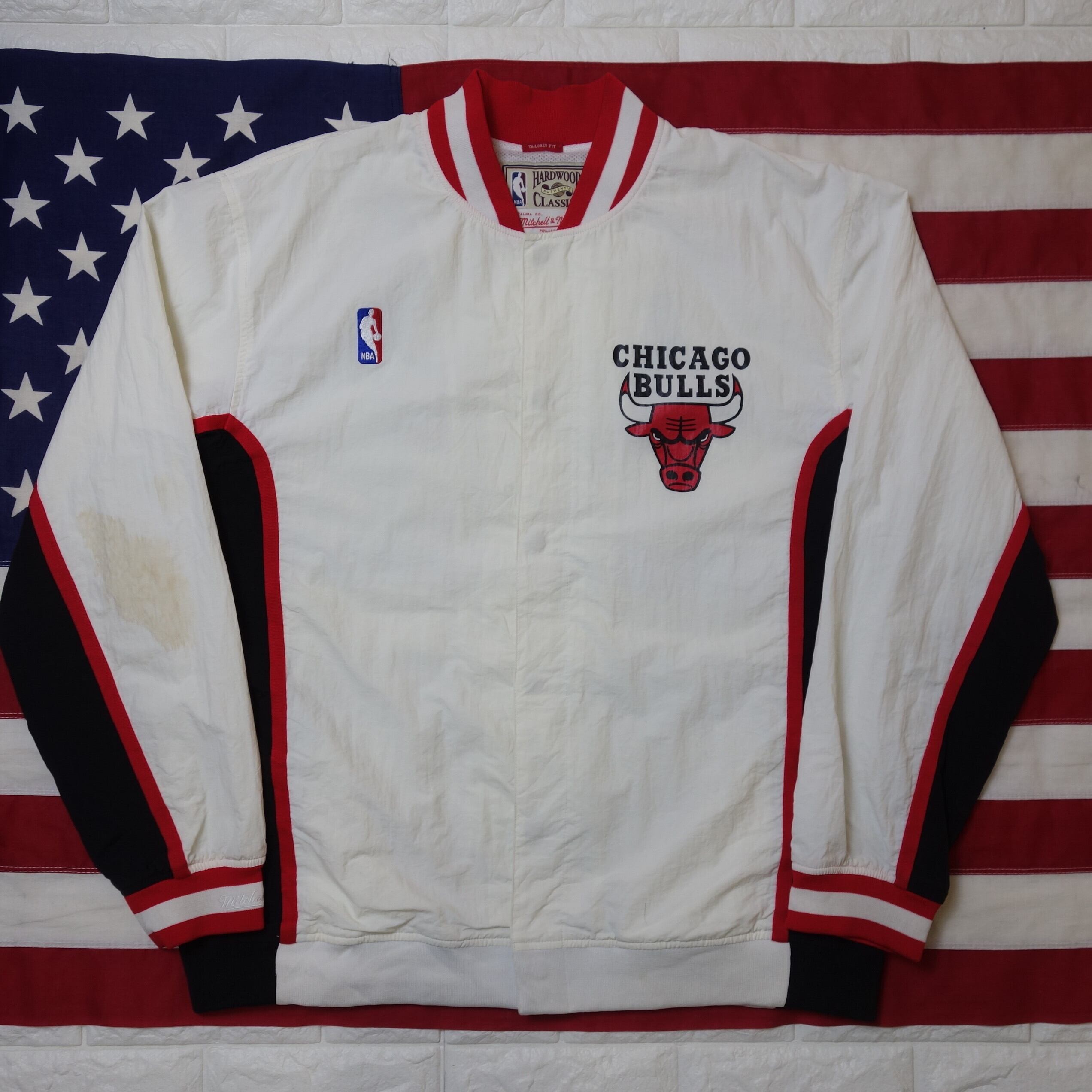 ●ホワイトをベースに、ブルズカラーを目一杯バランス良く配色し、デカく入ったチームロゴと相まって素敵なナイロンジャケット