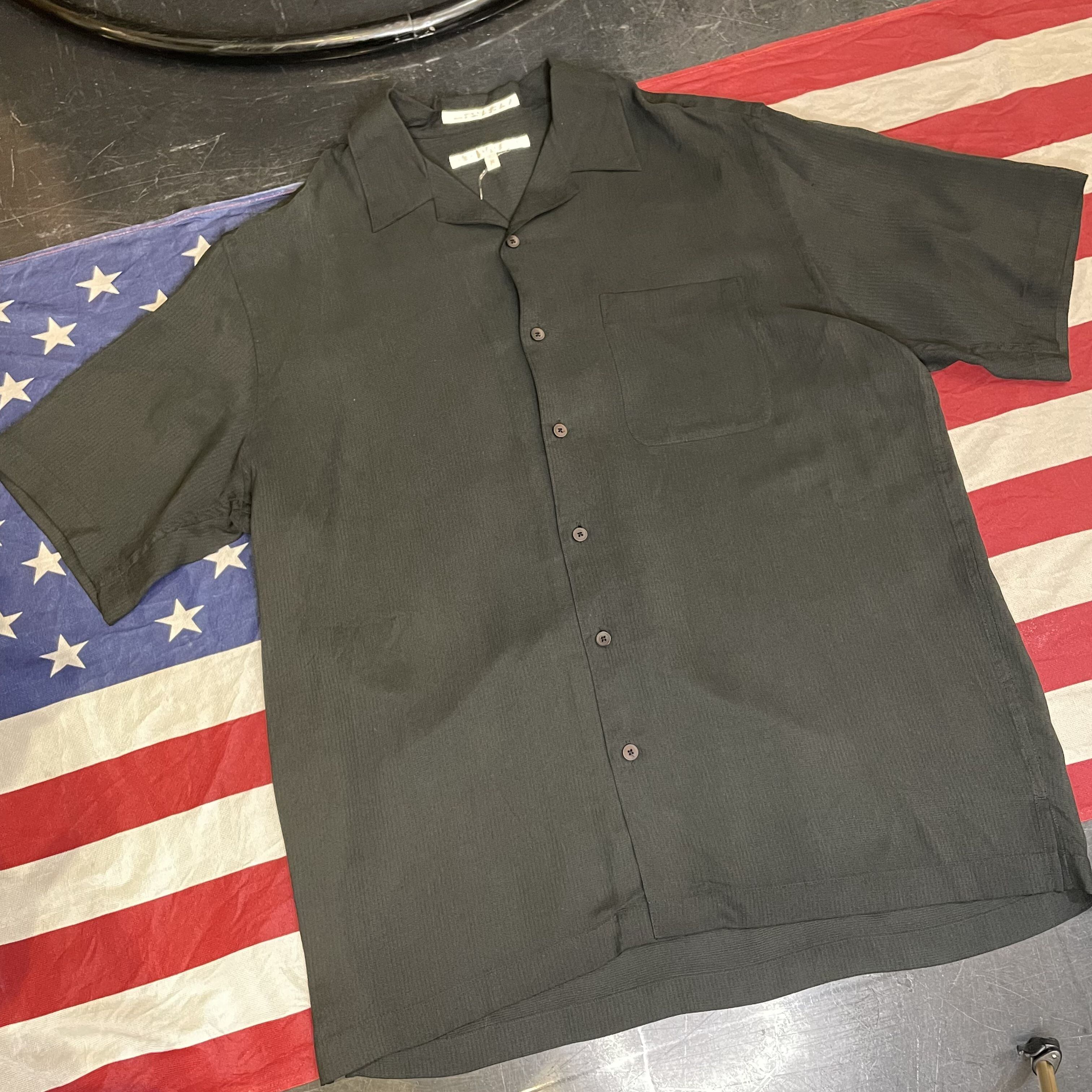 PERRY ELLIS(ペリー エリス) Black Silk Open collar shirt ブラック シルク オープンカラーシャツ
