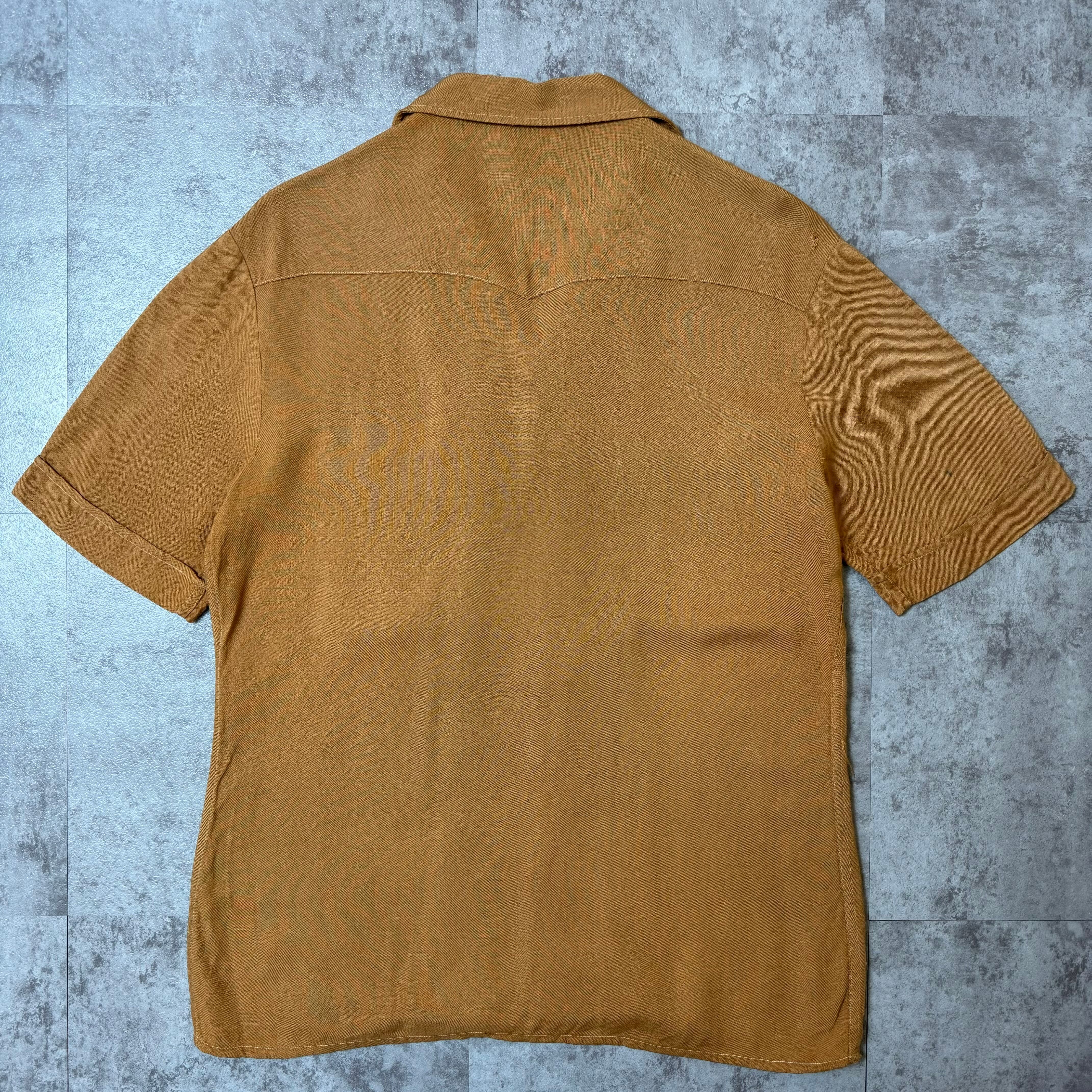 ●多少のダメージが年代を思わせる、レーヨン生地のギャバジン織オープンカラーシャツ、半袖