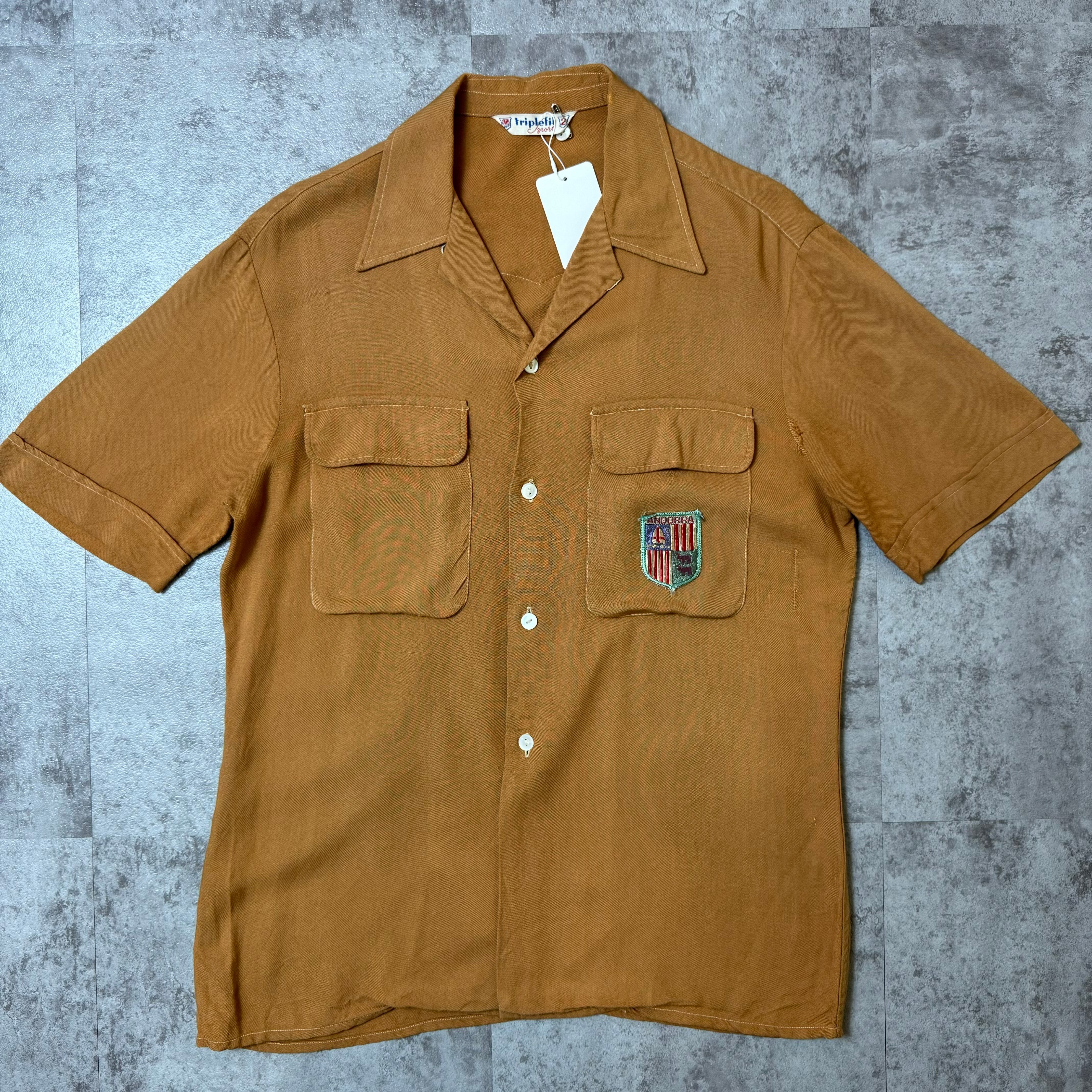 60's Triplefil Short sleeve open collar shirt Rayon gabardine レーヨン ギャバジン オープンカラーシャツ 半袖