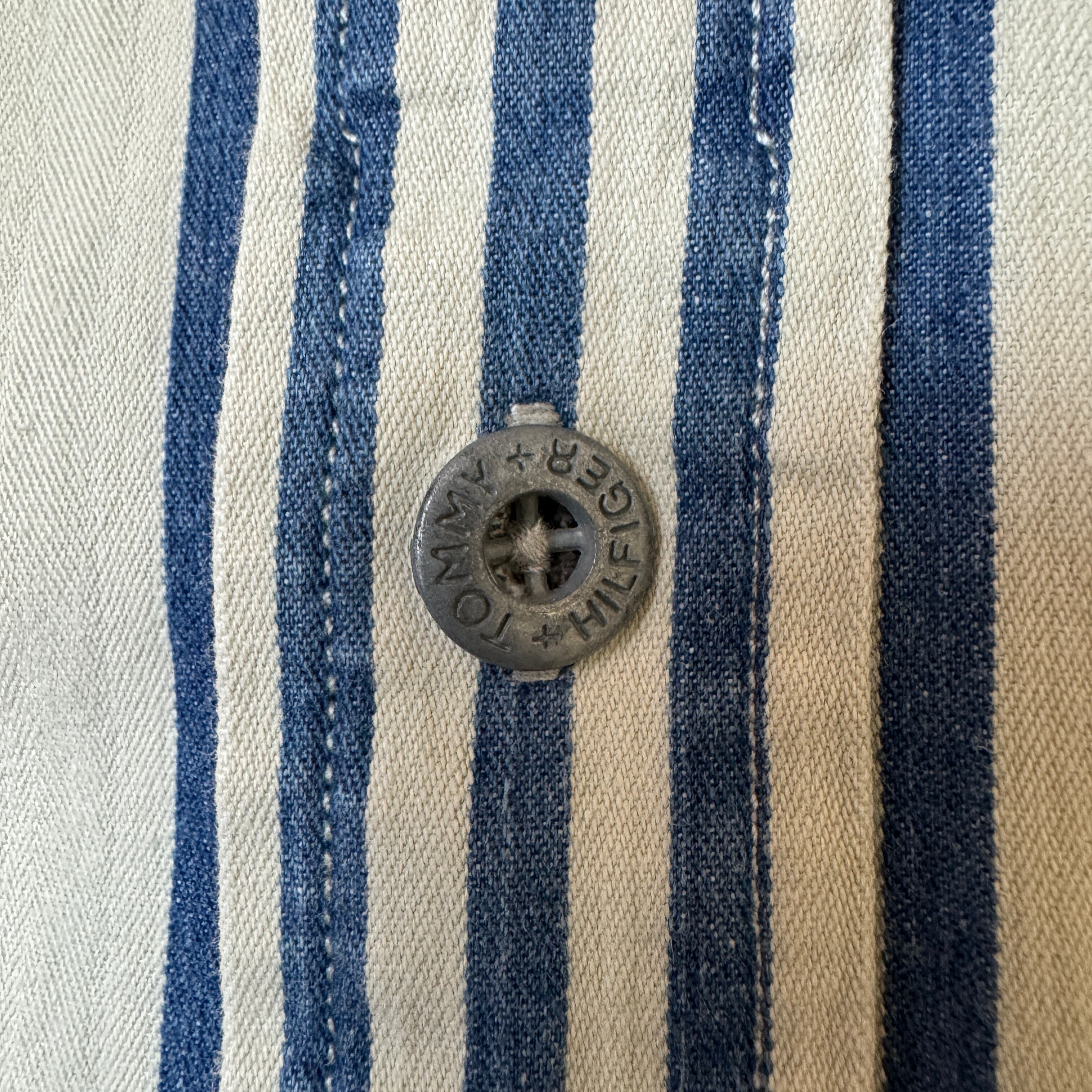 90's TOMMY HILFIGER(トミー ヒルフィガー) Striped band collar shirt ストライプ バンドカラー シャツ