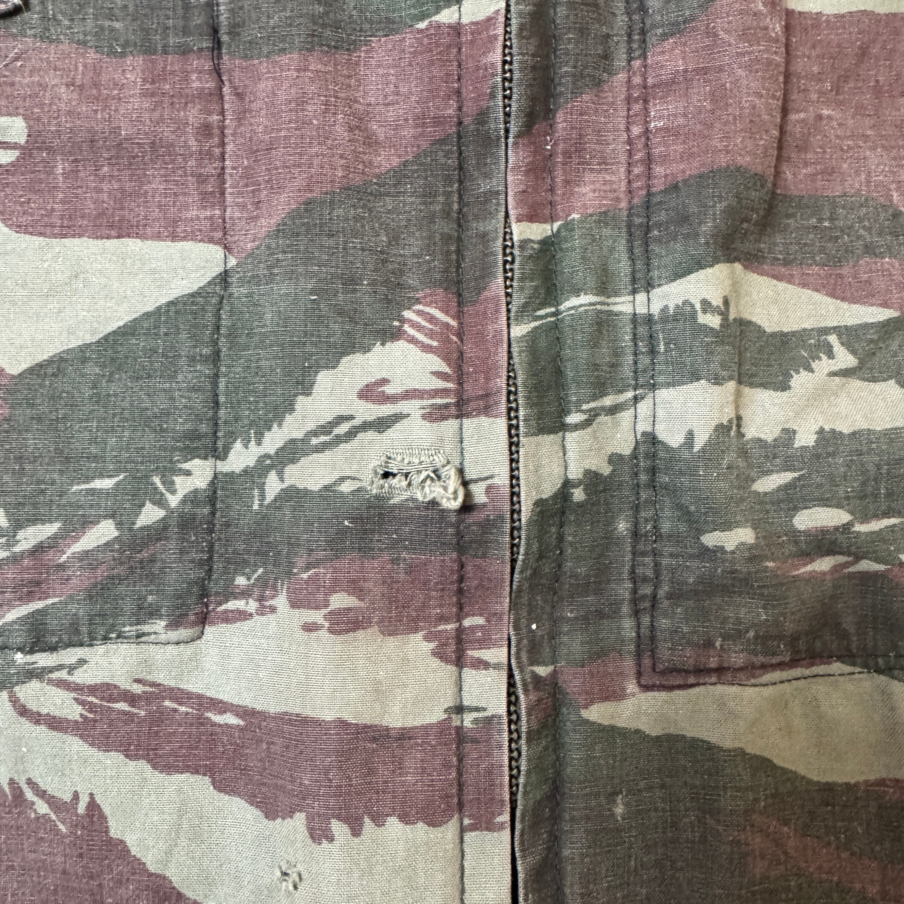 フランス外人部隊(空挺部隊)が使用したリザードカモの生地をハンティングスタイルに製作されたと推察する、フレンチハンティング。多少のダメージやペイント汚れの雰囲気がまたカッコ良い。