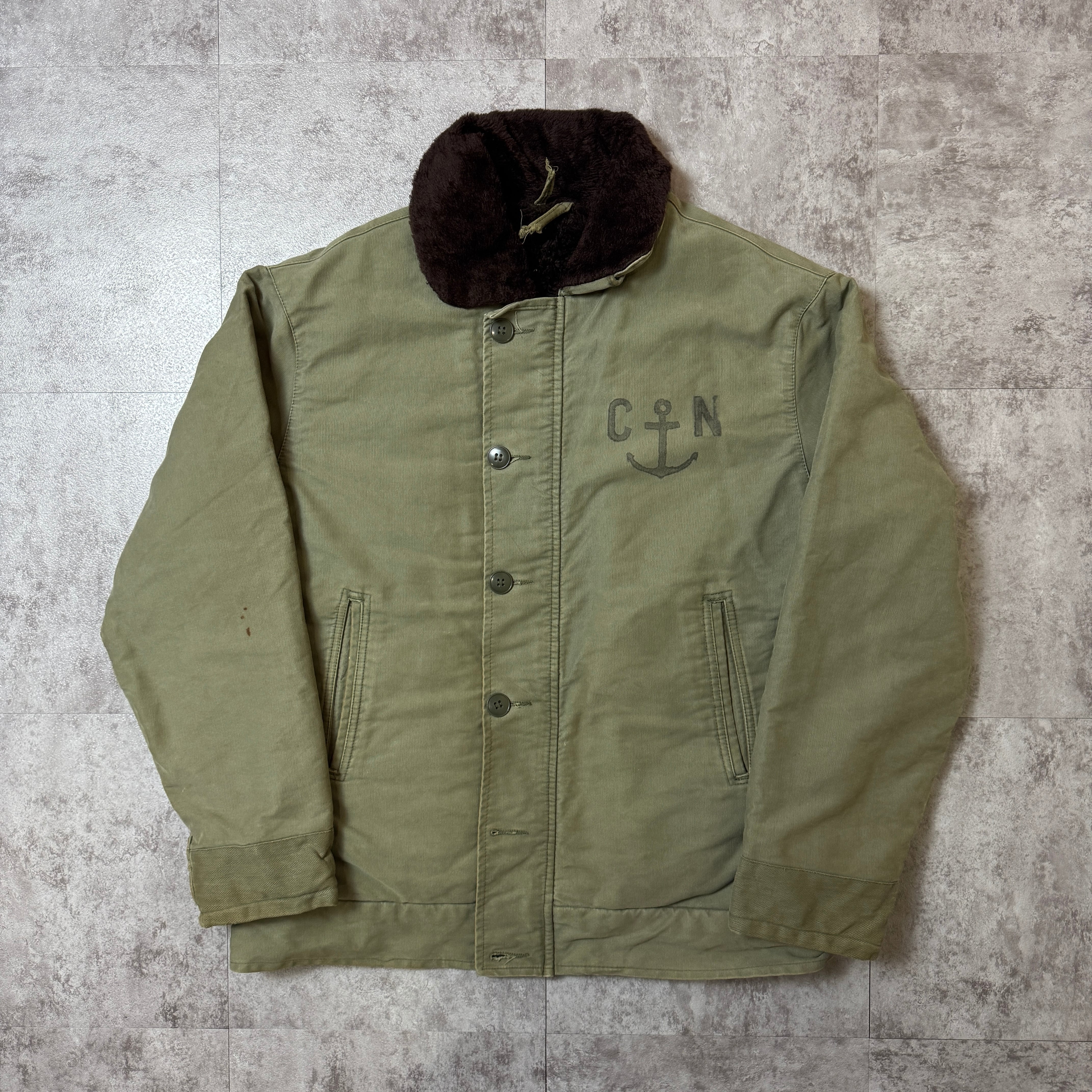 フランス軍のデッキジャケット。アメリカ軍のN1も良いですけど、こっちはフランスらしいオシャレな作りがめっちゃ良き。ステンシルもバッチリなのがカッコ良い。